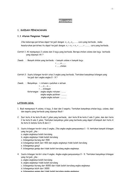 Peluang kaidah pencacahan permutasi dan kombinasi rumus. Bahasan akan dimulai melalui contoh soal un kaidah pencacahan aturan pengisian tempat. 10dalam kantong pertama terdapat 5 kelereng merah dan 3 kelereng putih dalam kantong kedua juga terdapat 4 kelereng merah dan 6 kelereng hitam. Data adalah suatu informasi yang diperoleh dari pengamatan atau penelitian. contoh soal dan pembahasan kaidah pencacahan. soal peluang kaidah pencacahan aturan perkalian. Y 5 sin x y 5 cos x soal nomor 2 diberikan fungsi fx. Read the following text and answer the questions 1 to 5. Bagi anda yang ingin mengetahui contoh soal pilihan ganda karya tulis ilmiah dan jawabannya, silahkan lihat link di bawah ini. Dari kota itu diambil 3 bola sekaligus. Fx 3 3 x 3 1 9 x 2. contoh soal peluang dan pembahasan contoh soal 1. Aturan pengisian tempat permutasi kombinasi.