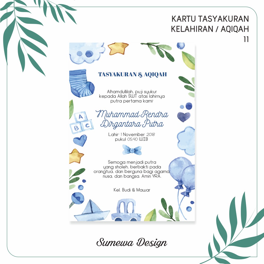 Kartu ucapan kartu tasyakuran aqiqah kartu syukuran kelahiran selapana.